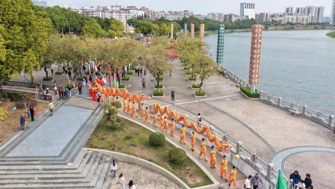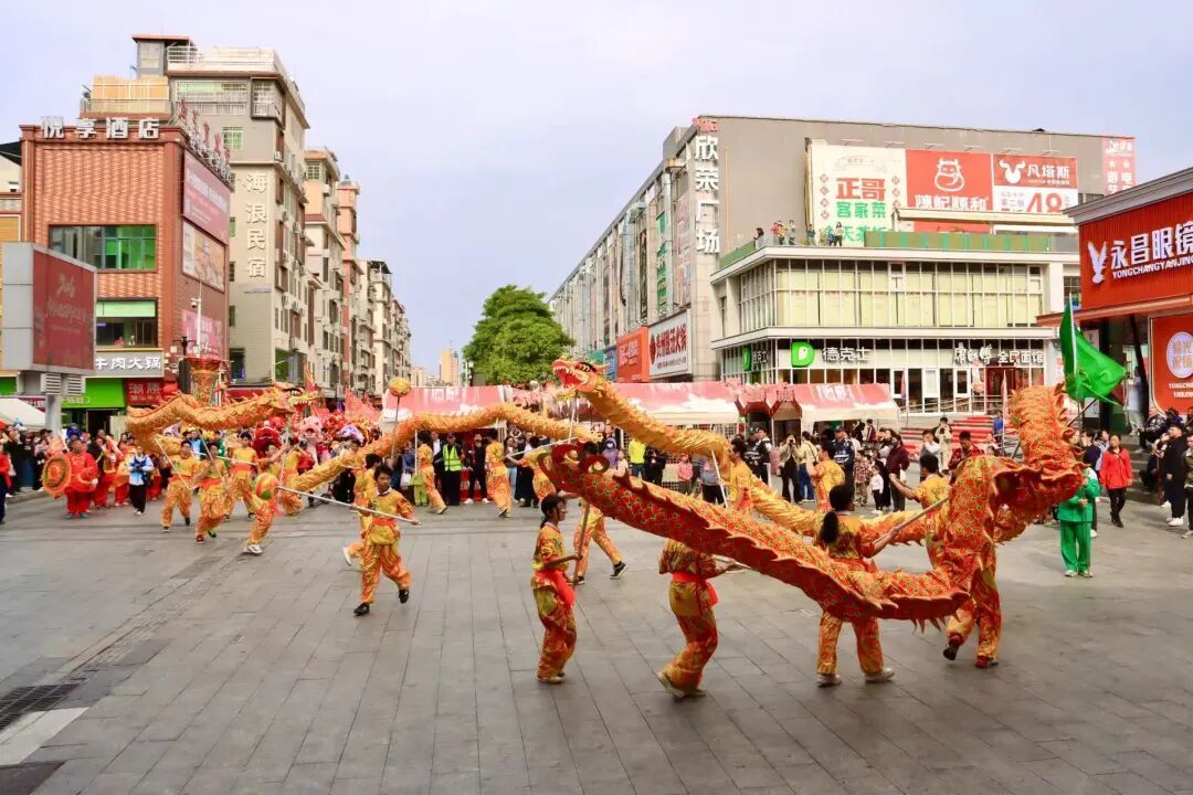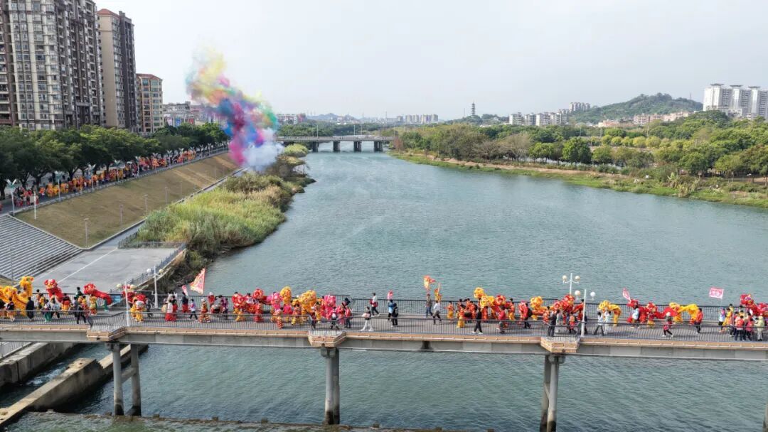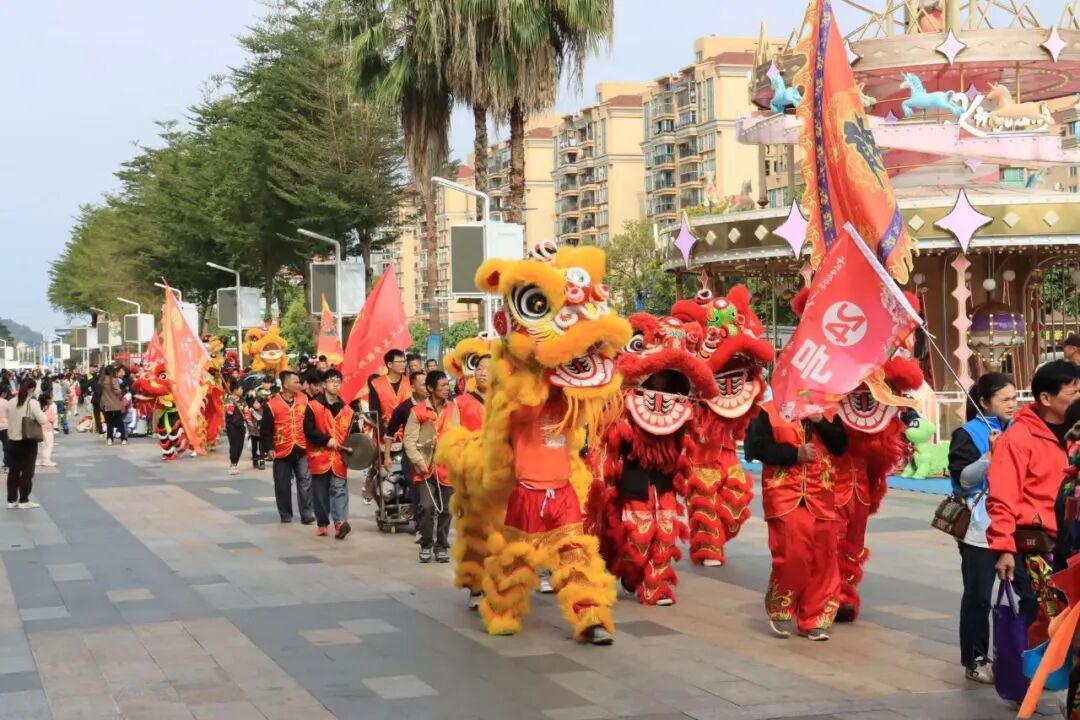 当日上午,百狮巡游率先拉开狂欢序幕,巡游队伍以2条气势恢宏、栩栩如生的祥龙引领开篇;紧随祥龙之后,来自全区八个镇街及教育系统的参赛群狮队伍全员集结,各支队伍特色各异、亮点纷呈。