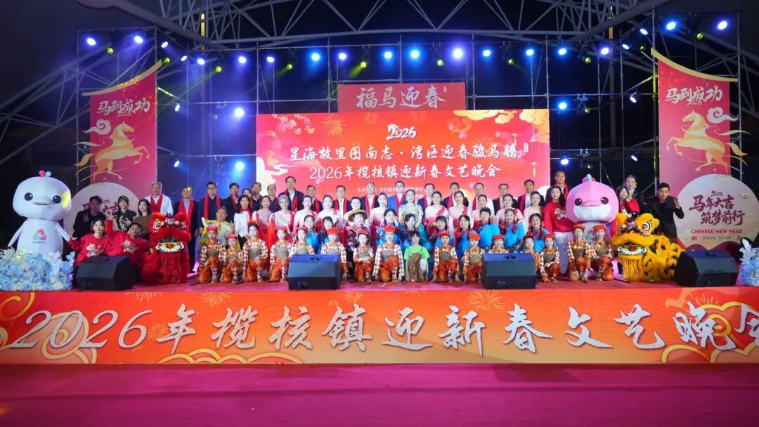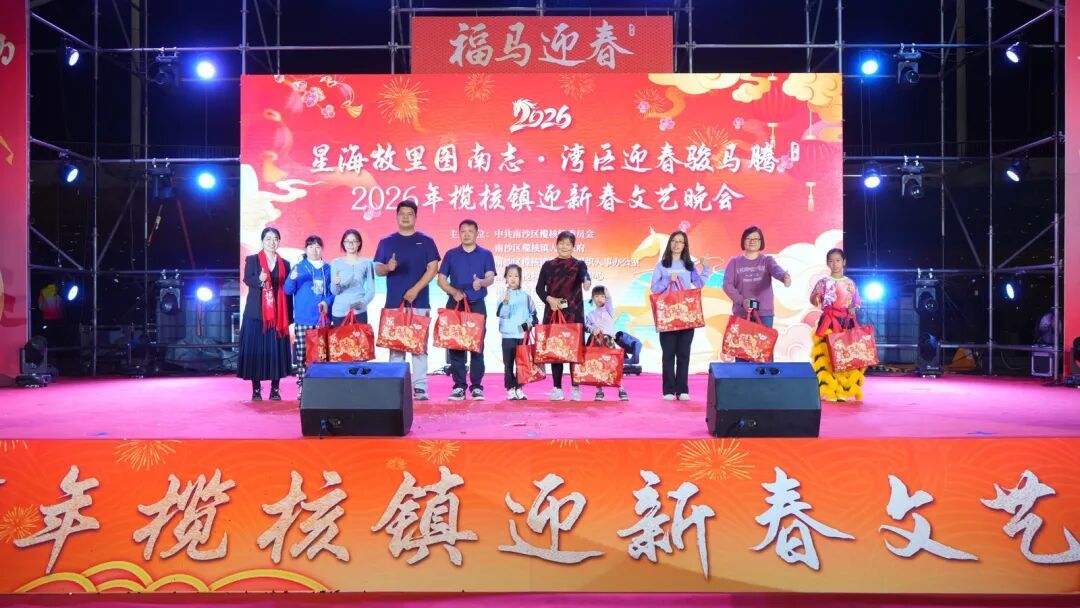 2月6日晚,“星海故里图南志,湾区迎春骏马腾”2026年榄核镇迎新春文艺晚会在星海广场热闹举行。全镇乡亲与各界来宾欢聚一堂,在歌舞声中共贺新春、共话发展,现场洋溢着喜庆祥和的节日氛围。